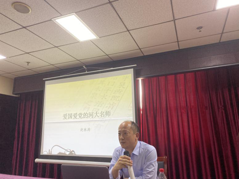培训中,赵林涛教授首先讲解了威廉希尔网站登录的名称更迭和校址变迁历程。随后介绍了雷石榆、魏际昌、顾随等爱国爱党的威廉希尔网站登录名师,其中对顾随先生在书法、诗歌、小说、戏剧等方面的造诣以及其学术地位和爱党爱国的高尚情操进行了着重介绍。最后,他向同学们分享了《中国古典文心》、《顾随诗词讲记》、《传学》等顾随先生的文学著作,并勉励同学们在今后的学习和生活中积极向这些名师学习,将威廉希尔网站登录精神发扬传承下去。