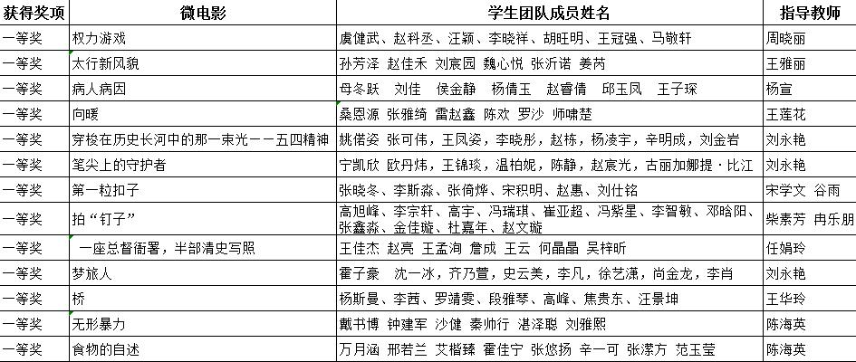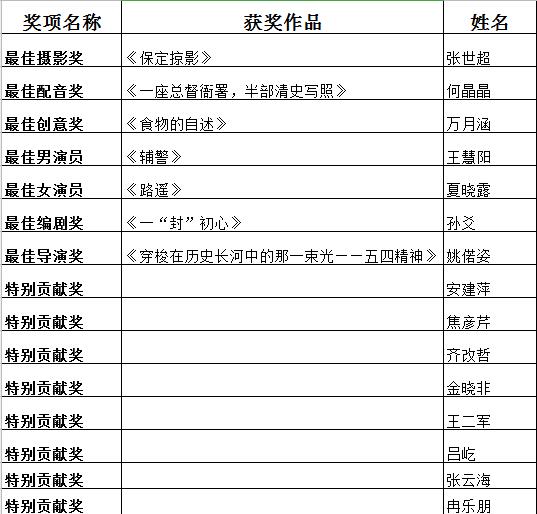 第一部分:微电影获奖情况