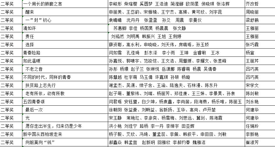 谷雨 柴素芳 陈海英 陈剑敏 崔淑芳 何建华 焦彦芹 李慧娟 李新艳 梁舒鹃 刘青 刘永艳 刘长亮 吕巧英 齐改哲 冉乐朋 任娟玲 沙占华 沈艳华 宋学文 田海舰 王华玲 王丽芹 王莲花 王雅丽 杨坤洋 杨宣 尤晓娜 张巧霞 张颖 张治江 郑立柱 周晓丽 左华