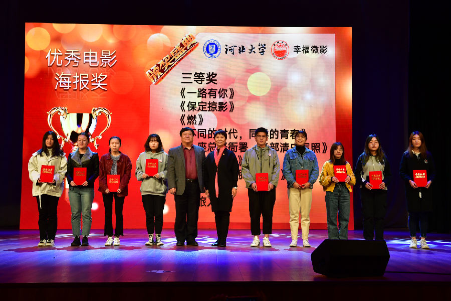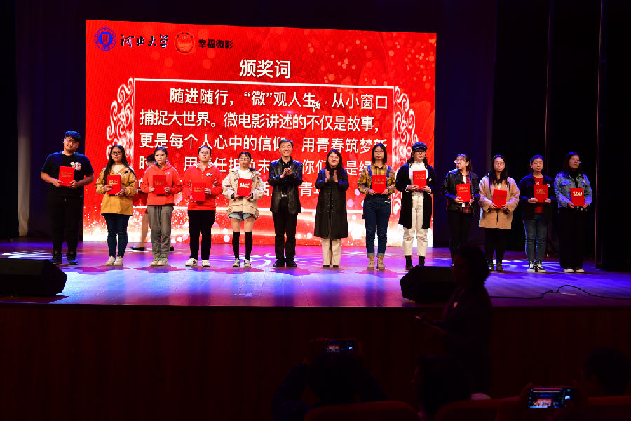 威廉希尔网站登录教务处处长张锋宣读颁奖决定,随后大会进行获奖作品展示及颁奖环节。2019年,william威廉亚洲官方思政课教师共指导全校员工拍摄微电影1000多部,此次大赛共评选获奖作品88部。为感谢在微电影教学改革中辛勤付出的老师们,颁奖典礼还设立了“特别贡献奖”及“优秀指导教师奖”。现场领导嘉宾分别为获奖师生颁发了荣誉证书。